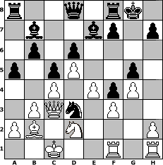 Partie-Notation im PGN-Format [Event "Opera "] [Site "www.mySchach.de"] [Date "2025.09.04"] [Round "1"] [White "Mynona"] [Black "Hobbykegler"] [ECO "A40"] [WhitemyELO "1448"] [BlackmyELO "1012"] [Result "*"] [TimeControl "10/2592000"] [WhiteDays "02"] [BlackDays "39"] [MySchachNr "133630"] 1. d4 b6 2. e4 c5 3. d5 Bb7 4. c4 e5 5. b3 Nf6 6. Bb2 d6 7. f3 Be7 8. Nd2 a5 9. Bd3 O-O 10. Qc2 Nbd7 11. Ne2 Nh5 12. g4 Nf4 13. Nxf4 exf4 14. O-O-O g5 15. Qc3 Ne5 16. Rdf1 Nxd3+ * Stellungs-Notation im FEN-Format r2q1rk1/1b2bp1p/1p1p4/p1pP2p1/2P1PpP1/1PQn1P2/PB1N3P/2K2R1R w - - 0 17 Geschlagene Figuren Weiss: Geschlagene Figuren Schwarz: Klicken Sie auf eine geschlagene Figur um den gewünschten Zug darzustellen!