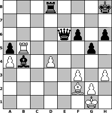 Partie-Notation im PGN-Format [Event "?"] [Site "www.mySchach.de"] [Date "2024.04.12"] [Round "?"] [White "peter58"] [Black "Seneca"] [ECO "D10"] [WhitemyELO "1541"] [BlackmyELO "1518"] [Result "0-1"] [TimeControl "10/2592000"] [WhiteDays "30"] [BlackDays "30"] [MySchachNr "131845"] 1. d4 d5 2. c4 c6 3. Qc2 e6 4. Nf3 Nf6 5. Bg5 Be7 6. Nbd2 h6 7. Bh4 a6 8. e3 O-O 9. Bd3 b5 10. b3 Nfd7 11. Bg3 Bb7 12. O-O c5 13. Rae1 bxc4 14. bxc4 a5 15. Ne5 cxd4 16. exd4 Bb4 17. Nxd7 Nxd7 18. Re2 dxc4 19. Nxc4 Nf6 20. Rd1 Kh8 21. Qb2 Bd5 22. a3 Be7 23. h3 Ra7 24. Qa1 Rb7 25. Rb2 Rxb2 26. Qxb2 Qa8 27. f3 Bxc4 28. Bxc4 Nd5 29. Bxd5 Qxd5 30. Rd3 f6 31. Rb3 Rd8 32. Bf2 g5 33. Rb5 Qa8 34. a4 Bb4 35. Qe2 Qc8 36. Qxe6 Qxe6 0-1 Stellungs-Notation im FEN-Format 3r3k/8/4qp1p/pR4p1/Pb1P4/5P1P/5BP1/6K1 - - - 0 37 Geschlagene Figuren Weiss: Geschlagene Figuren Schwarz: Klicken Sie auf eine geschlagene Figur um den gewünschten Zug darzustellen!