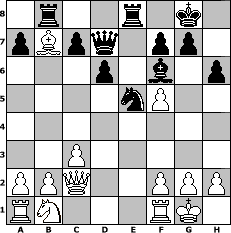 Partie-Notation im PGN-Format [Event "?"] [Site "www.mySchach.de"] [Date "2025.11.01"] [Round "?"] [White "UPS"] [Black "skuehnel"] [ECO "C45"] [WhitemyELO "1661"] [BlackmyELO "1365"] [Result "*"] [TimeControl "10/2592000"] [WhiteDays "48"] [BlackDays "49"] [MySchachNr "133795"] 1. e4 e5 2. Nf3 Nc6 3. d4 exd4 4. Nxd4 Nf6 5. Bg5 Be7 6. Nf5 h6 7. Bxf6 Bxf6 8. c3 O-O 9. Be2 d6 10. O-O Re8 11. Bf3 Bxf5 12. exf5 Qd7 13. Qc2 Ne5 14. Bxb7 Rab8 * Stellungs-Notation im FEN-Format 1r2r1k1/pBpq1pp1/3p1b1p/4nP2/8/2P5/PPQ2PPP/RN3RK1 w - - 1 15 Geschlagene Figuren Weiss: Geschlagene Figuren Schwarz: Klicken Sie auf eine geschlagene Figur um den gewünschten Zug darzustellen!