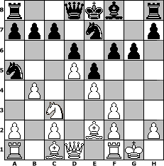 Partie-Notation im PGN-Format [Event "Pedro Damiano"] [Site "www.mySchach.de"] [Date "2016.09.18"] [Round "1"] [White "Helmut48"] [Black "sprinterde"] [ECO "C40"] [WhitemyELO "2010"] [BlackmyELO "1652"] [Result "1-0"] [TimeControl "10/2592000"] [WhiteDays "60"] [BlackDays "57"] [MySchachNr "104987"] 1. e4 e5 2. Nf3 f6 3. Bc4 Ne7 4. Nc3 Nbc6 5. d4 Na5 6. Be2 d6 7. O-O Bg4 8. d5 g6 9. b4 Bxf3 10. gxf3 1-0 Stellungs-Notation im FEN-Format r2qkb1r/ppp1n2p/3p1pp1/n2Pp3/1P2P3/2N2P2/P1P1BP1P/R1BQ1RK1 - kq - 0 10 Geschlagene Figuren Weiss: Geschlagene Figuren Schwarz: Klicken Sie auf eine geschlagene Figur um den gewünschten Zug darzustellen!