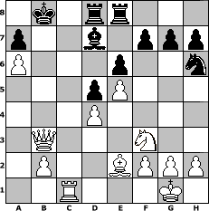Partie-Notation im PGN-Format [Event "Blitz-Masters Gruppe B"] [Site "www.mySchach.de"] [Date "2005.10.08"] [Round "1"] [White "bane"] [Black "Hotze"] [ECO "C00"] [WhitemyELO "1791"] [BlackmyELO "1511"] [Result "1-0"] [TimeControl "10/86400"] [WhiteDays "03"] [BlackDays "03"] [MySchachNr "18307"] 1. e4 e6 2. e5 d5 3. d4 c5 4. c3 Nc6 5. Nf3 Be7 6. Bd3 cxd4 7. cxd4 Qb6 8. Nc3 Bd7 9. Be2 Bb4 10. O-O O-O-O 11. Na4 Qc7 12. Bd2 Kb8 13. Bxb4 Nxb4 14. Nc5 Nh6 15. Rc1 Bc6 16. Qb3 Qa5 17. a3 Qc7 18. axb4 Rhe8 19. b5 Bd7 20. Na6+ bxa6 21. Rxc7 Kxc7 22. Rc1+ Kb8 23. bxa6+ 1-0 Stellungs-Notation im FEN-Format 1k1rr3/p2b1ppp/P3p2n/3pP3/3P4/1Q3N2/1P2BPPP/2R3K1 - - - 0 23 Geschlagene Figuren Weiss: ![]() ![]() ![]() ![]() ![]() ![]() ![]() ![]() ![]() ![]() ![]() ![]() ![]() ![]() ![]() Geschlagene Figuren Schwarz: ![]() ![]() ![]() ![]() ![]() ![]() ![]() ![]() ![]() ![]() ![]() ![]() ![]() ![]() ![]() Klicken Sie auf eine geschlagene Figur um den gewünschten Zug darzustellen!