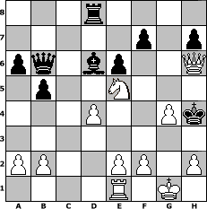 Partie-Notation im PGN-Format [Event "Schachmatt 2"] [Site "www.mySchach.de"] [Date "2017.01.12"] [Round "1"] [White "miu"] [Black "Joschi"] [ECO "B10"] [WhitemyELO "1544"] [BlackmyELO "1563"] [Result "1-0"] [TimeControl "10/1728000"] [WhiteDays "20"] [BlackDays "20"] [MySchachNr "106453"] 1. e4 c6 2. c4 d5 3. cxd5 cxd5 4. exd5 Nf6 5. Bb5+ Nbd7 6. Nc3 a6 7. Ba4 b5 8. Bb3 Nb6 9. d4 Nbxd5 10. Nf3 Bb7 11. O-O e6 12. Bd2 Bd6 13. Re1 O-O 14. Rc1 Qb6 15. Bg5 Rac8 16. Ne5 Rfd8 17. Bxd5 Bxd5 18. Bxf6 gxf6 19. Nxd5 Rxc1 20. Nxf6+ Kg7 21. Nh5+ Kh6 22. Qxc1+ Kxh5 23. g4+ Kh4 24. Qh6# 1-0 Stellungs-Notation im FEN-Format 3r4/5p1p/pq1bp2Q/1p2N3/3P2Pk/8/PP2PP1P/4R1K1 - - - 2 24 Geschlagene Figuren Weiss: Geschlagene Figuren Schwarz: Klicken Sie auf eine geschlagene Figur um den gewünschten Zug darzustellen!