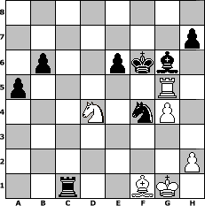 Partie-Notation im PGN-Format [Event "Englische Spiele"] [Site "www.mySchach.de"] [Date "2008.12.24"] [Round "2"] [White "rgHD"] [Black "muetoe"] [ECO "A16"] [WhitemyELO "1552"] [BlackmyELO "1951"] [Result "0-1"] [TimeControl "10/1728000"] [WhiteDays "20"] [BlackDays "12"] [MySchachNr "50966"] 1. c4 Nf6 2. Nc3 c5 3. g3 Nc6 4. Bg2 g6 5. e3 Bg7 6. Nge2 d6 7. O-O O-O 8. d4 Bf5 9. b3 Qa5 10. Bd2 Qa3 11. Nb5 Qb2 12. Bc3 Qc2 13. Qxc2 Bxc2 14. dxc5 dxc5 15. Nf4 Rfd8 16. Rac1 Bf5 17. Rfd1 g5 18. Nd5 Ne4 19. Bxg7 Kxg7 20. f3 Nf6 21. e4 Bg6 22. Bh3 e6 23. Nxf6 Kxf6 24. a3 Ke7 25. Kf2 Na5 26. b4 cxb4 27. axb4 Nc6 28. Bf1 a6 29. Nc3 Nxb4 30. Rb1 a5 31. c5 Rac8 32. Rxd8 Kxd8 33. Na4 Ke7 34. Ke3 f5 35. exf5 Bxf5 36. Rc1 Rd8 37. Nc3 Nc2+ 38. Kf2 Rd2+ 39. Kg1 Nd4 40. Bg2 Nb3 41. Re1 Nxc5 42. Re5 b6 43. g4 Bg6 44. Rxg5 Rc2 45. Nb5 Kf6 46. f4 Nd3 47. Nd4 Rc1+ 48. Bf1 Nxf4 0-1 Stellungs-Notation im FEN-Format 8/7p/1p2pkb1/p5R1/3N1nP1/8/7P/2r2BK1 - - - 0 49 Geschlagene Figuren Weiss: Geschlagene Figuren Schwarz: Klicken Sie auf eine geschlagene Figur um den gewünschten Zug darzustellen!