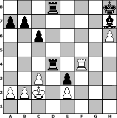 Partie-Notation im PGN-Format [Event "Sommer 2019"] [Site "www.mySchach.de"] [Date "2019.07.17"] [Round "1"] [White "skuehnel"] [Black "Joschi"] [ECO "B15"] [WhitemyELO "1471"] [BlackmyELO "1487"] [Result "0-1"] [TimeControl "10/2592000"] [WhiteDays "89"] [BlackDays "90"] [MySchachNr "115381"] 1. e4 c6 2. d4 d5 3. Nc3 dxe4 4. Bf4 Nf6 5. f3 exf3 6. Nxf3 e6 7. Bd3 Bd6 8. Qd2 Bxf4 9. Qxf4 O-O 10. Ng5 h6 11. h4 Nbd7 12. Nce4 Nxe4 13. Bxe4 Nf6 14. O-O-O Nxe4 15. Qxe4 f5 16. Nxe6 fxe4 17. Nxd8 Rxd8 18. h5 Bf5 19. Rh4 Rd5 20. g4 Bh7 21. Rg1 Rxd4 22. c3 Rd3 23. Kc2 Rad8 24. g5 hxg5 25. Rxg5 e3 26. Rxg7+ Kxg7 27. h6+ Kh8 28. Rf4 R3d4+ 0-1 Stellungs-Notation im FEN-Format 3r3k/pp5b/2p4P/8/3r1R2/2P1p3/PPK1P3/8 - - - 3 29 Geschlagene Figuren Weiss: Geschlagene Figuren Schwarz: Klicken Sie auf eine geschlagene Figur um den gewünschten Zug darzustellen!