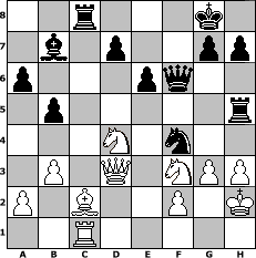 Partie-Notation im PGN-Format [Event "MN-2012-1"] [Site "www.mySchach.de"] [Date "2012.07.24"] [Round "1"] [White "BobbyF4"] [Black "pepo47"] [ECO "B20"] [WhitemyELO "1538"] [BlackmyELO "2035"] [Result "0-1"] [TimeControl "10/2592000"] [WhiteDays "00"] [BlackDays "30"] [MySchachNr "82931"] 1. e4 c5 2. d4 cxd4 3. c3 dxc3 4. Nxc3 e6 5. Bc4 a6 6. Qe2 Ne7 7. Nf3 Nbc6 8. O-O Ng6 9. Be3 b5 10. Bb3 Be7 11. Rfd1 O-O 12. Rac1 Bb7 13. g3 Rc8 14. h3 Na5 15. Bc2 Nc4 16. b3 Nxe3 17. Qxe3 Bc5 18. Qd3 Ba3 19. Ne2 f5 20. exf5 Bxc1 21. Rxc1 Rxf5 22. Nfd4 Rh5 23. Kh2 Qg5 24. Nf3 Qf6 25. Ned4 Nf4 0-1 Stellungs-Notation im FEN-Format 2r3k1/1b1p2pp/p3pq2/1p5r/3N1n2/1P1Q1NPP/P1B2P1K/2R5 - - - 8 26 Geschlagene Figuren Weiss: Geschlagene Figuren Schwarz: Klicken Sie auf eine geschlagene Figur um den gewünschten Zug darzustellen!