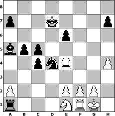 Partie-Notation im PGN-Format [Event "Neue Reihe: sch"] [Site "www.mySchach.de"] [Date "2009.05.15"] [Round "2"] [White "Grubengeist"] [Black "bane"] [ECO "C52"] [WhitemyELO "1968"] [BlackmyELO "1819"] [Result "0-1"] [TimeControl "10/2592000"] [WhiteDays "23"] [BlackDays "30"] [MySchachNr "55756"] 1. e4 e5 2. Nf3 Nc6 3. Bc4 Bc5 4. b4 Bxb4 5. c3 Ba5 6. d4 exd4 7. O-O Nf6 8. e5 d5 9. exf6 dxc4 10. fxg7 Rg8 11. Re1+ Be6 12. Bg5 Qd5 13. Nbd2 Rxg7 14. Ne4 Kf8 15. Bh6 dxc3 16. Qc1 Rd8 17. Nfg5 Qf5 18. Nxe6+ fxe6 19. Qg5 Qxg5 20. Nxg5 Nd4 21. Re4 c5 22. Rg4 Ke7 23. Bxg7 c2 24. Ne4 Kf7 25. Bh6 Nf5 26. Rf1 Rd1 27. Ng5+ Ke7 28. Nf3 b5 29. Bg5+ Kd7 30. Re4 Nd4 31. Ne1 c1=Q 32. Bxc1 Rxc1 33. h4 Ra1 0-1 Stellungs-Notation im FEN-Format 8/p2k3p/4p3/bpp5/2pnR2P/8/P3PPP1/r3NRK1 - - - 1 34 Geschlagene Figuren Weiss: Geschlagene Figuren Schwarz: Klicken Sie auf eine geschlagene Figur um den gewünschten Zug darzustellen!