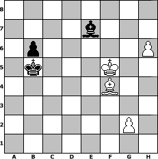 Partie-Notation im PGN-Format [Event "4.)PEPSTEIN - CUP 2009"] [Site "www.mySchach.de"] [Date "2009.06.26"] [Round "1"] [White "espero"] [Black "nogumo"] [ECO "C30"] [WhitemyELO "1663"] [BlackmyELO "1717"] [Result "1-0"] [TimeControl "10/1728000"] [WhiteDays "14"] [BlackDays "19"] [MySchachNr "56999"] 1. e4 e5 2. f4 d6 3. Nc3 exf4 4. Bc4 Qh4+ 5. Kf1 Be6 6. Nd5 Bxd5 7. Bxd5 c6 8. Bb3 Nf6 9. Nf3 Qg4 10. Qe2 Be7 11. e5 dxe5 12. Bxf7+ Kf8 13. Nxe5 Qxe2+ 14. Kxe2 Bd6 15. Nc4 Bc7 16. Be6 Ke7 17. Bh3 Nbd7 18. d4 Rae8 19. Kd3 Kd8 20. Bd2 g5 21. Bxd7 Kxd7 22. h4 Ne4 23. Ne5+ Bxe5 24. Kxe4 Bg7+ 25. Kd3 h6 26. Rae1 Rxe1 27. Rxe1 Re8 28. Rxe8 Kxe8 29. Ke4 Kf7 30. h5 Ke6 31. c4 b6 32. b4 Bf8 33. a4 a6 34. b5 axb5 35. cxb5 cxb5 36. axb5 Ba3 37. Bc3 Bf8 38. d5+ Kd7 39. Bd4 Kc7 40. Be5+ Kd7 41. Kf5 Be7 42. Bg7 g4 43. Kxg4 Kd6 44. Bxh6 Kxd5 45. Bxf4 Kc5 46. Kf5 Kxb5 47. h6 1-0 Stellungs-Notation im FEN-Format 8/4b3/1p5P/1k3K2/5B2/8/6P1/8 - - - 0 47 Geschlagene Figuren Weiss: Geschlagene Figuren Schwarz: Klicken Sie auf eine geschlagene Figur um den gewünschten Zug darzustellen!