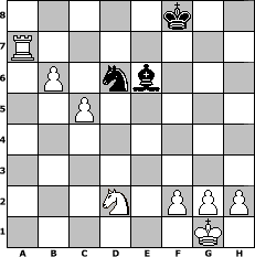 Partie-Notation im PGN-Format [Event "Trainingslager II"] [Site "www.mySchach.de"] [Date "2011.05.24"] [Round "1"] [White "Vahl1"] [Black "augustus"] [ECO "C42"] [WhitemyELO "1609"] [BlackmyELO "1236"] [Result "1-0"] [TimeControl "10/1728000"] [WhiteDays "20"] [BlackDays "20"] [MySchachNr "74095"] 1. e4 e5 2. Nf3 Nf6 3. Nxe5 Qe7 4. Nf3 Nxe4 5. Be2 d5 6. O-O Bd7 7. Re1 g6 8. Bd3 f5 9. Bxe4 dxe4 10. d3 Bg7 11. dxe4 O-O 12. exf5 Qd6 13. fxg6 Qxg6 14. Qd5+ Kh8 15. Qxb7 Nc6 16. Qxc7 Rf7 17. Ng5 Rc8 18. Nxf7+ Qxf7 19. Qd6 h6 20. c3 Re8 21. Rxe8+ Bxe8 22. Bxh6 Kg8 23. Qg3 Qd7 24. Nd2 Kh7 25. Qxg7+ Qxg7 26. Bxg7 Kxg7 27. Re1 Bf7 28. b4 Bxa2 29. b5 Nd8 30. Re7+ Kf8 31. Rxa7 Be6 32. c4 Nf7 33. b6 Nd6 34. c5 1-0 Stellungs-Notation im FEN-Format 5k2/R7/1P1nb3/2P5/8/8/3N1PPP/6K1 - - - 0 34 Geschlagene Figuren Weiss: Geschlagene Figuren Schwarz: Klicken Sie auf eine geschlagene Figur um den gewünschten Zug darzustellen!