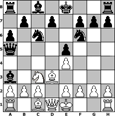 Partie-Notation im PGN-Format [Event "Der Mai ist gekommen!"] [Site "www.mySchach.de"] [Date "2009.05.05"] [Round "1"] [White "RashimIbenRohal"] [Black "sprinterde"] [ECO "B32"] [WhitemyELO "1581"] [BlackmyELO "1678"] [Result "0-1"] [TimeControl "10/864000"] [WhiteDays "07"] [BlackDays "10"] [MySchachNr "55422"] 1. e4 c5 2. Nf3 Nc6 3. d4 Qa5+ 4. Nc3 cxd4 5. Nxd4 e5 6. Ndb5 Nf6 7. Bd3 a6 8. Na3 Bxa3 0-1 Stellungs-Notation im FEN-Format r1b1k2r/1p1p1ppp/p1n2n2/q3p3/4P3/b1NB4/PPP1PPPP/R1BQK2R - KQkq - 0 9 Geschlagene Figuren Weiss: Geschlagene Figuren Schwarz: Klicken Sie auf eine geschlagene Figur um den gewünschten Zug darzustellen!