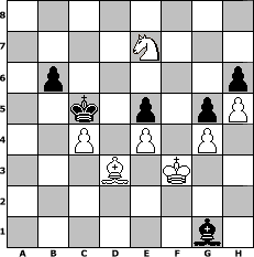 Partie-Notation im PGN-Format [Event "Ab in den Herbst"] [Site "www.mySchach.de"] [Date "2014.09.23"] [Round "1"] [White "muellerh"] [Black "Vahl1"] [ECO "A40"] [WhitemyELO "1498"] [BlackmyELO "1744"] [Result "1-0"] [TimeControl "10/864000"] [WhiteDays "10"] [BlackDays "08"] [MySchachNr "96023"] 1. d4 g6 2. c4 Bg7 3. Nc3 Nf6 4. e4 d6 5. f4 c5 6. d5 e6 7. Nf3 O-O 8. Bd2 Re8 9. Bd3 e5 10. O-O Nbd7 11. fxe5 Nxe5 12. Nxe5 dxe5 13. Bg5 a6 14. a3 Bg4 15. Bxf6 Bxd1 16. Bxd8 Raxd8 17. Raxd1 Rd6 18. b4 cxb4 19. axb4 Rb6 20. b5 Bf8 21. bxa6 Bc5+ 22. Kh1 Rxa6 23. Nb5 Rd8 24. Ra1 Rda8 25. Rxa6 Rxa6 26. h3 b6 27. Rf6 Ra1+ 28. Kh2 Rd1 29. Rf3 Kg7 30. d6 Kf8 31. d7 Ke7 32. Rxf7+ Kd8 33. Bc2 Rxd7 34. Rxd7+ Kxd7 35. Bd3 Ke6 36. g4 Be3 37. h4 Kd7 38. Kg3 Kc6 39. Kf3 Bg1 40. Nc3 h6 41. Nd5 Kc5 42. Ne7 g5 43. h5 1-0 Stellungs-Notation im FEN-Format 8/4N3/1p5p/2k1p1pP/2P1P1P1/3B1K2/8/6b1 - - - 0 43 Geschlagene Figuren Weiss: ![]() ![]() ![]() ![]() ![]() ![]() ![]() ![]() ![]() ![]() ![]() ![]() ![]() ![]() ![]() Geschlagene Figuren Schwarz: ![]() ![]() ![]() ![]() ![]() ![]() ![]() ![]() ![]() ![]() ![]() ![]() ![]() ![]() ![]() Klicken Sie auf eine geschlagene Figur um den gewünschten Zug darzustellen!