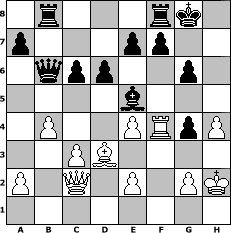 Partie-Notation im PGN-Format [Event "Bobby Fischer lebt"] [Site "www.mySchach.de"] [Date "2009.07.29"] [Round "1"] [White "Andreas"] [Black "Haki"] [ECO "B55"] [WhitemyELO "1523"] [BlackmyELO "1504"] [Result "0-1"] [TimeControl "10/2592000"] [WhiteDays "84"] [BlackDays "90"] [MySchachNr "57885"] 1. e4 c5 2. Nf3 d6 3. d4 cxd4 4. Nxd4 Nf6 5. Bd3 g6 6. O-O Bg7 7. c3 O-O 8. Kh1 Nc6 9. Nxc6 bxc6 10. f4 Qb6 11. Qc2 Ng4 12. h3 Ne3 13. Bxe3 Qxe3 14. Nd2 Qg3 15. Rf3 Qh4 16. Raf1 Rb8 17. Kh2 Bg4 18. Rg3 Bd7 19. Nf3 Qxf4 20. Nd2 Qe5 21. Nf3 Qf4 22. Ne5 Qxe5 23. Rff3 h5 24. h4 Bg4 25. Rf1 Qa5 26. b4 Qb6 27. Rxg4 hxg4 28. Rf4 Be5 0-1 Stellungs-Notation im FEN-Format 1r3rk1/p3pp2/1qpp2p1/4b3/1P2PRpP/2PB4/P1Q1P1PK/8 - - - 2 29 Geschlagene Figuren Weiss: Geschlagene Figuren Schwarz: Klicken Sie auf eine geschlagene Figur um den gewünschten Zug darzustellen!