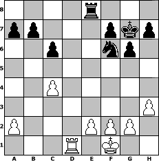 Partie eroeffnet am 29.03.2013, 00:02 Uhr und beendet am 25.04.2013, 06:26 Uhr Spieler weiss: Wulfen49 Spieler schwarz: Teresa Wulfen49 hat die Partie gewonnen! | |