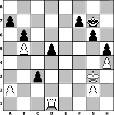 Partie-Notation im PGN-Format [Event "Verschachert #2"] [Site "www.mySchach.de"] [Date "2012.11.04"] [Round "1"] [White "Haki"] [Black "Knight"] [ECO "C54"] [WhitemyELO "1338"] [BlackmyELO "1211"] [Result "1-0"] [TimeControl "10/864000"] [WhiteDays "50"] [BlackDays "50"] [MySchachNr "84851"] 1. e4 e5 2. Nf3 Nc6 3. Bc4 Bc5 4. c3 Nf6 5. O-O d6 6. d3 Bg4 7. Nbd2 O-O 8. b4 Bb6 9. Qc2 Re8 10. d4 exd4 11. h3 Bxf3 12. Nxf3 Nxe4 13. cxd4 Bxd4 14. Nxd4 Nxd4 15. Qb2 Nf5 16. Qb3 Re7 17. f3 Neg3 18. Rf2 h6 19. Bf4 Nd4 20. Qd3 Nde2+ 21. Kh2 Nxf4 22. Qd4 Nfe2 23. Qg4 Re3 24. Bxe2 Nxe2 25. Raf1 Qf6 26. f4 Rae8 27. Rf3 Rxf3 28. Rxf3 Nd4 29. Rg3 g6 30. Qd7 Qxf4 31. Qxe8+ Kg7 32. Qe3 Qf6 33. Qc3 b6 34. Rg4 Nf3+ 35. Qxf3 c5 36. Qxf6+ Kxf6 37. b5 d5 38. Rf4+ Kg7 39. h4 c4 40. Rd4 c3 41. Rd1 h5 42. Kg3 1-0 Stellungs-Notation im FEN-Format 8/p4pk1/1p4p1/1P1p3p/7P/2p3K1/P5P1/3R4 - - - 1 42 Geschlagene Figuren Weiss: Geschlagene Figuren Schwarz: Klicken Sie auf eine geschlagene Figur um den gewünschten Zug darzustellen!
