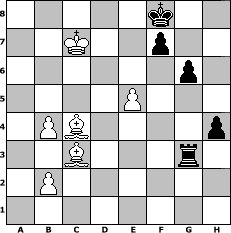 Partie-Notation im PGN-Format [Event "F"] [Site "www.mySchach.de"] [Date "2017.08.16"] [Round "1"] [White "Grubengeist"] [Black "muetoe"] [ECO "B01"] [WhitemyELO "2004"] [BlackmyELO "1919"] [Result "1-0"] [TimeControl "10/2592000"] [WhiteDays "149"] [BlackDays "141"] [MySchachNr "109219"] 1. e4 d5 2. exd5 Qxd5 3. d4 e5 4. Nc3 Bb4 5. Nge2 Nf6 6. a3 exd4 7. axb4 dxc3 8. Nxc3 Qxd1+ 9. Kxd1 O-O 10. Bg5 Nc6 11. b5 Rd8+ 12. Kc1 Nd4 13. Ne4 Bg4 14. Bxf6 Nb3+ 15. cxb3 Rd1+ 16. Kc2 Rxa1 17. Bg5 Bf5 18. f3 Rc8 19. g4 Bxe4+ 20. fxe4 c6 21. Bg2 Rxh1 22. Bxh1 cxb5+ 23. Kd3 Re8 24. Be3 b6 25. Bf3 Re6 26. h4 b4 27. Kc4 Rd6 28. Bd4 Rc6+ 29. Kxb4 Rc1 30. e5 Rf1 31. Be2 Re1 32. Bd3 g6 33. Bc3 Rh1 34. Kb5 Rxh4 35. Ka6 Rxg4 36. Bc4 Rg3 37. Kxa7 h5 38. Kxb6 Kf8 39. b4 h4 40. Kc7 1-0 Stellungs-Notation im FEN-Format 5k2/2K2p2/6p1/4P3/1PB4p/2B3r1/1P6/8 - - - 1 40 Geschlagene Figuren Weiss: Geschlagene Figuren Schwarz: Klicken Sie auf eine geschlagene Figur um den gewünschten Zug darzustellen!