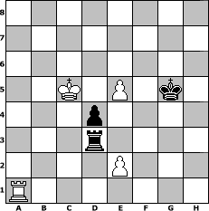 Partie-Notation im PGN-Format [Event "R"] [Site "www.mySchach.de"] [Date "2005.07.20"] [Round "1"] [White "GIM1961"] [Black "Juliette2103"] [ECO "C55"] [WhitemyELO "1998"] [BlackmyELO "1979"] [Result "1/2-1/2"] [TimeControl "10/2592000"] [WhiteDays "087"] [BlackDays "124"] [MySchachNr "15240"] 1. e4 e5 2. Nf3 Nc6 3. Bc4 Nf6 4. d3 Bc5 5. Nc3 O-O 6. Bg5 h6 7. Bh4 Be7 8. O-O d6 9. a4 Bg4 10. h3 Bh5 11. Bxf6 Bxf6 12. Nd5 Nd4 13. g4 Bg6 14. Nxd4 exd4 15. f4 Bh7 16. g5 hxg5 17. Qh5 Bg6 18. Nxf6+ Qxf6 19. Qxg5 Qxg5+ 20. fxg5 Rfe8 21. Kg2 Re5 22. h4 c6 23. Kg3 Bh5 24. Rf2 b6 25. Raf1 Rf8 26. Rf5 Rxf5 27. Rxf5 Re8 28. b4 Re7 29. b5 c5 30. Bd5 Kh7 31. Rf2 Kg8 32. Rf1 Kh7 33. a5 bxa5 34. Ra1 f6 35. gxf6 gxf6 36. Rxa5 Be8 37. Kf4 Kg7 38. Bc4 Rb7 39. Ra6 Bxb5 40. Bxb5 Rxb5 41. Rxa7+ Kg6 42. h5+ Kxh5 43. Kf5 Kh4 44. Kxf6 Rb2 45. Ke6 Rxc2 46. Kxd6 Rc3 47. e5 Rxd3 48. Kxc5 Kg5 49. Ra1 1/2-1/2 Stellungs-Notation im FEN-Format 8/8/8/2K1P1k1/3p4/3r4/4P3/R7 - - - 2 49 Geschlagene Figuren Weiss: Geschlagene Figuren Schwarz: Klicken Sie auf eine geschlagene Figur um den gewünschten Zug darzustellen!