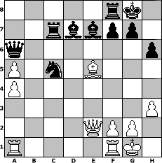 Partie-Notation im PGN-Format [Event "CaMorra"] [Site "www.mySchach.de"] [Date "2018.06.25"] [Round "1"] [White "reisinger"] [Black "sprinterde"] [ECO "B20"] [WhitemyELO "1478"] [BlackmyELO "1713"] [Result "0-1"] [TimeControl "10/2592000"] [WhiteDays "90"] [BlackDays "89"] [MySchachNr "112470"] 1. e4 c5 2. d4 cxd4 3. c3 dxc3 4. Nxc3 e5 5. Nf3 Nc6 6. Bc4 Nf6 7. O-O d6 8. h3 Be7 9. Ng5 O-O 10. Qb3 Qe8 11. Qd1 h6 12. Nf3 a6 13. a4 Na5 14. Bd5 Bd7 15. b4 Rc8 16. bxa5 Rxc3 17. Bxb7 Rc7 18. Bxa6 Nxe4 19. Bb2 Qa8 20. Qe2 Nc5 21. Nxe5 dxe5 22. Bxe5 Qxa6 0-1 Stellungs-Notation im FEN-Format 5rk1/2rbbpp1/q6p/P1n1B3/P7/7P/4QPP1/R4RK1 - - - 0 23 Geschlagene Figuren Weiss: Geschlagene Figuren Schwarz: Klicken Sie auf eine geschlagene Figur um den gewünschten Zug darzustellen!