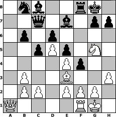 Partie-Notation im PGN-Format [Event "Schach-2016-01"] [Site "www.mySchach.de"] [Date "2016.02.06"] [Round "1"] [White "Ziegert"] [Black "ChNe"] [ECO "C41"] [WhitemyELO "1504"] [BlackmyELO "1515"] [Result "0-1"] [TimeControl "10/2592000"] [WhiteDays "03"] [BlackDays "21"] [MySchachNr "102402"] 1. e4 e5 2. Nf3 d6 3. Bc4 Nf6 4. d3 Be7 5. O-O O-O 6. h3 b6 7. Nc3 a5 8. Nd5 Nxd5 9. Bxd5 c6 10. Bb3 a4 11. Be3 axb3 12. axb3 Rxa1 13. Qxa1 Qc7 14. d4 c5 15. d5 f5 16. Ng5 f4 0-1 Stellungs-Notation im FEN-Format 1nb2rk1/2q1b1pp/1p1p4/2pPp1N1/4Pp2/1P2B2P/1PP1PPP1/Q4RK1 - - - 0 17 Geschlagene Figuren Weiss: Geschlagene Figuren Schwarz: Klicken Sie auf eine geschlagene Figur um den gewünschten Zug darzustellen!