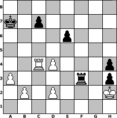 Partie-Notation im PGN-Format [Event "!!!Turnier in den Sommer!!!"] [Site "www.mySchach.de"] [Date "2011.03.02"] [Round "1"] [White "deepsabel"] [Black "bane"] [ECO "D50"] [WhitemyELO "1973"] [BlackmyELO "1916"] [Result "1/2-1/2"] [TimeControl "10/1728000"] [WhiteDays "93"] [BlackDays "94"] [MySchachNr "72480"] 1. d4 d5 2. c4 e6 3. Nc3 Nf6 4. Bg5 Bb4 5. Nf3 Nc6 6. e3 h6 7. Bh4 g5 8. Bg3 Ne4 9. Qc2 h5 10. h3 Nxg3 11. fxg3 Qd6 12. Qf2 Qe7 13. Rc1 a6 14. Bd3 dxc4 15. Bxc4 Bd7 16. a3 Bxc3+ 17. Rxc3 O-O-O 18. Qe2 Qd6 19. O-O Rdg8 20. Ne5 Nxe5 21. dxe5 Qxe5 22. Bxa6 g4 23. Bxb7+ Kxb7 24. Rb3+ Ka7 25. Rxf7 gxh3 26. Rxd7 Rxg3 27. Rd4 Qa5 28. Rb5 Rxg2+ 29. Qxg2 Qxb5 30. Qg7 Rc8 31. Rb4 Qc5 32. Qd4 Qxd4 33. exd4 Rf8 34. Kh2 Rf3 35. Rb5 h4 36. Rb4 Ka6 37. Rc4 Kb7 38. Rb4+ Ka7 39. Rc4 Kb7 40. Rb4+ Ka7 41. Rc4 1/2-1/2 Stellungs-Notation im FEN-Format 8/k1p5/4p3/8/2RP3p/P4r1p/1P1P3K/8 - - - 11 41 Geschlagene Figuren Weiss: Geschlagene Figuren Schwarz: Klicken Sie auf eine geschlagene Figur um den gewünschten Zug darzustellen!
