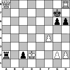 Partie-Notation im PGN-Format [Event "Gambitzeit (Wolga- / Benkogambit)"] [Site "www.mySchach.de"] [Date "2009.11.15"] [Round "2"] [White "Joschi"] [Black "rgHD"] [ECO "A57"] [WhitemyELO "1581"] [BlackmyELO "1589"] [Result "1-0"] [TimeControl "10/1728000"] [WhiteDays "20"] [BlackDays "20"] [MySchachNr "60678"] 1. d4 Nf6 2. c4 c5 3. d5 b5 4. cxb5 a6 5. b6 e6 6. dxe6 fxe6 7. Qa4 Qxb6 8. Nc3 Bb7 9. f3 Nc6 10. e4 d5 11. exd5 Nxd5 12. Bd2 Be7 13. Bc4 O-O 14. Nxd5 exd5 15. Bxd5+ Kh8 16. Qb3 Nb4 17. Bxb7 Qxb7 18. a3 Qd5 19. Qxd5 Nxd5 20. Ne2 Bf6 21. Nc3 Nxc3 22. Bxc3 Rfe8+ 23. Kf2 Bxc3 24. bxc3 Rab8 25. Rhb1 Red8 26. Rxb8 Rb8 27. Rd1 h6 28. Rd6 a5 29. Ra6 Rb3 30. Rxa5 Rxc3 31. a4 Kg8 32. Ra8+ Kf7 33. a5 Ra3 34. a6 c4 35. a7 c3 36. Ke3 c2+ 37. Kd2 Ra2 38. f4 g6 39. Rh8 Kg7 40. a8=Q 1-0 Stellungs-Notation im FEN-Format Q6R/6k1/6pp/8/5P2/8/r1pK2PP/8 - - - 0 40 Geschlagene Figuren Weiss: Geschlagene Figuren Schwarz: Klicken Sie auf eine geschlagene Figur um den gewünschten Zug darzustellen!