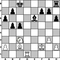Partie-Notation im PGN-Format [Event "Der Mai ist gekommen"] [Site "www.mySchach.de"] [Date "2007.05.05"] [Round "1"] [White "zoli"] [Black "HPB2005"] [ECO "C21"] [WhitemyELO "1656"] [BlackmyELO "2018"] [Result "1/2-1/2"] [TimeControl "10/2592000"] [WhiteDays "68"] [BlackDays "62"] [MySchachNr "34541"] 1. e4 e5 2. d4 Nc6 3. Nf3 exd4 4. Nxd4 Nf6 5. Bg5 Bc5 6. Nxc6 Bxf2+ 7. Kxf2 Nxe4+ 8. Kg1 Qxg5 9. Qd4 dxc6 10. Qxe4+ Be6 11. Qe1 O-O-O 12. Nc3 Qc5+ 13. Qf2 Qxf2+ 14. Kxf2 Rd2+ 15. Be2 Rxc2 16. Rhc1 Rxb2 17. Rab1 Rb6 18. Rxb6 cxb6 19. Bd3 h6 20. g3 a6 21. Bc2 c5 22. Rd1 b5 1/2-1/2 Stellungs-Notation im FEN-Format 2k4r/1p3pp1/p3b2p/1pp5/8/2N3P1/P1B2K1P/3R4 - - - 0 23 Geschlagene Figuren Weiss: Geschlagene Figuren Schwarz: Klicken Sie auf eine geschlagene Figur um den gewünschten Zug darzustellen!