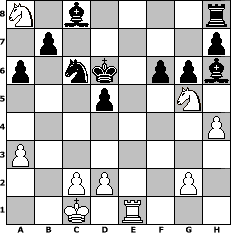 Partie-Notation im PGN-Format [Event "^^Lust, Laune und Spannung am Schach!!!^^"] [Site "www.mySchach.de"] [Date "2007.09.24"] [Round "1"] [White "Knight"] [Black "muellerh"] [ECO "D00"] [WhitemyELO "1290"] [BlackmyELO "1505"] [Result "0-1"] [TimeControl "10/864000"] [WhiteDays "29"] [BlackDays "28"] [MySchachNr "38442"] 1. d4 d5 2. e4 dxe4 3. Nc3 Nf6 4. f3 exf3 5. Qxf3 Qxd4 6. Be3 Qd6 7. Bd3 e6 8. O-O-O Qe7 9. Bc4 Nc6 10. Nb5 a6 11. Bc5 Qxc5 12. Nxc7+ Ke7 13. Nxa8 Qxc4 14. Nh3 g6 15. Ng5 Bh6 16. h4 Qxa2 17. Qa3+ Qxa3 18. bxa3 Nd5 19. Rhf1 f6 20. Rxd5 exd5 21. Re1+ Kd6 0-1 Stellungs-Notation im FEN-Format N1b4r/1p5p/p1nk1ppb/3p2N1/7P/P7/2PP2P1/2K1R3 - - - 2 22 Geschlagene Figuren Weiss: Geschlagene Figuren Schwarz: Klicken Sie auf eine geschlagene Figur um den gewünschten Zug darzustellen!