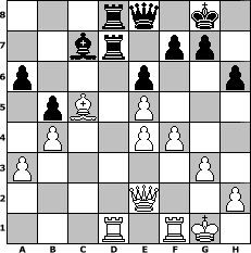 Partie-Notation im PGN-Format [Event "?"] [Site "www.mySchach.de"] [Date "2025.11.01"] [Round "?"] [White "UPS"] [Black "Winston"] [ECO "B23"] [WhitemyELO "1661"] [BlackmyELO "1539"] [Result "*"] [TimeControl "10/2592000"] [WhiteDays "70"] [BlackDays "90"] [MySchachNr "133881"] 1. e4 c5 2. Nc3 a6 3. Nf3 e6 4. d4 h6 5. Be3 d6 6. dxc5 Nc6 7. cxd6 Bxd6 8. Bd3 Nge7 9. O-O Ng6 10. a3 O-O 11. g3 Nce5 12. Nxe5 Nxe5 13. f4 Nxd3 14. cxd3 Qe7 15. e5 Bc7 16. Ne4 Rd8 17. Qe2 Bd7 18. Nc3 Bc6 19. Rad1 Rd7 20. Ne4 Bxe4 21. dxe4 Rad8 22. b4 b5 23. Bc5 Qe8 * Stellungs-Notation im FEN-Format 3rq1k1/2br1pp1/p3p2p/1pB1P3/1P2PP2/P5P1/4Q2P/3R1RK1 w - - 2 24 Geschlagene Figuren Weiss: Geschlagene Figuren Schwarz: Klicken Sie auf eine geschlagene Figur um den gewünschten Zug darzustellen!