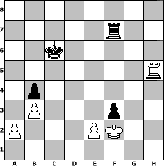 Partie-Notation im PGN-Format [Event "Sommer 2025_1"] [Site "www.mySchach.de"] [Date "2025.06.20"] [Round "1"] [White "alibengali"] [Black "kalle"] [ECO "B75"] [WhitemyELO "1740"] [BlackmyELO "1651"] [Result "1/2-1/2"] [TimeControl "10/1728000"] [WhiteDays "119"] [BlackDays "085"] [MySchachNr "133451"] 1. e4 c5 2. Nf3 d6 3. d4 cxd4 4. Nxd4 Nf6 5. Nc3 g6 6. Be3 Bg7 7. f3 Nc6 8. Qd2 O-O 9. Bc4 Bd7 10. O-O-O Rc8 11. Bb3 Ne5 12. Kb1 Nc4 13. Bxc4 Rxc4 14. g4 a6 15. h4 b5 16. h5 b4 17. Nd5 Nxd5 18. exd5 a5 19. hxg6 fxg6 20. Qh2 Kf7 21. Bh6 Rh8 22. Ne6 Bxe6 23. dxe6+ Kg8 24. Bxg7 Kxg7 25. Qh6+ Kg8 26. b3 Rc3 27. Qf4 Qf8 28. Qxf8+ Kxf8 29. f4 Kg7 30. f5 gxf5 31. gxf5 Kf6 32. Rd5 Rc5 33. Rxc5 dxc5 34. Rh5 h6 35. Kb2 Rc8 36. c3 Ke5 37. Kc2 Kf4 38. f6 exf6 39. Rxh6 Kf5 40. e7 Ke6 41. Rh5 Kxe7 42. Rh7+ Ke6 43. Ra7 f5 44. Rxa5 f4 45. Ra6+ Ke5 46. cxb4 cxb4+ 47. Kd2 f3 48. Ke3 Rf8 49. Ra5+ Kd6 50. Kf2 Kc6 51. Rh5 Rf7 1/2-1/2 Stellungs-Notation im FEN-Format 8/5r2/2k5/7R/1p6/1P3p2/P3PK2/8 - - - 8 52 Geschlagene Figuren Weiss: Geschlagene Figuren Schwarz: Klicken Sie auf eine geschlagene Figur um den gewünschten Zug darzustellen!