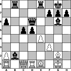 Partie-Notation im PGN-Format [Event "Godzilla Mannschaftsturnier 2013"] [Site "www.mySchach.de"] [Date "2013.08.15"] [Round "1"] [Board "1"] [White "brucybabe"] [Black "Erich"] [ECO "E21"] [WhitemyELO "1691"] [BlackmyELO "2065"] [Result "0-1"] [TimeControl "10/3456000"] [WhiteDays "27"] [BlackDays "40"] [MySchachNr "89711"] 1. d4 Nf6 2. c4 e6 3. Nc3 Bb4 4. Nf3 O-O 5. e3 d5 6. Be2 c5 7. cxd5 exd5 8. dxc5 Bxc5 9. O-O Nc6 10. Nd4 a6 11. Nxc6 bxc6 12. Qc2 Bd6 13. h3 Re8 14. Bf3 Bc7 15. Bd2 Qd6 16. g3 Bxh3 17. Rfe1 Qd7 18. Ne2 Bf5 19. Qc1 Ne4 20. Nd4 Bg6 21. Bg2 c5 22. Ne2 Rab8 23. f3 Nxg3 24. Nxg3 Bxg3 25. Rd1 Qd6 26. Be1 Be5 27. e4 Bxb2 0-1 Stellungs-Notation im FEN-Format 1r2r1k1/5ppp/p2q2b1/2pp4/4P3/5P2/Pb4B1/R1QRB1K1 - - - 0 28 Geschlagene Figuren Weiss: Geschlagene Figuren Schwarz: Klicken Sie auf eine geschlagene Figur um den gewünschten Zug darzustellen!