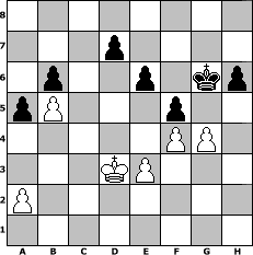 Partie-Notation im PGN-Format [Event "Ab in den Herbst"] [Site "www.mySchach.de"] [Date "2014.09.23"] [Round "1"] [White "sprinterde"] [Black "espero"] [ECO "A56"] [WhitemyELO "1744"] [BlackmyELO "1770"] [Result "0-1"] [TimeControl "10/864000"] [WhiteDays "09"] [BlackDays "10"] [MySchachNr "96022"] 1. d4 Nf6 2. c4 c5 3. dxc5 Na6 4. e3 Nxc5 5. b4 Ne6 6. Bb2 a5 7. b5 Nc5 8. Bxf6 gxf6 9. Nc3 b6 10. Be2 Bb7 11. Bf3 Rb8 12. Bxb7 Rxb7 13. Nge2 Bg7 14. Qd4 O-O 15. O-O-O f5 16. Qf4 e6 17. h3 Qf6 18. Qd4 Qg6 19. Qf4 Rc8 20. g4 fxg4 21. Qxg4 Qxg4 22. hxg4 Ne4 23. Nxe4 Rxc4+ 24. N4c3 Bxc3 25. Nxc3 Rxc3+ 26. Kb2 Rbc7 27. Rc1 Rxc1 28. Rxc1 Rxc1 29. Kxc1 Kg7 30. Kd2 Kg6 31. f4 h6 32. Kd3 f5 0-1 Stellungs-Notation im FEN-Format 8/3p4/1p2p1kp/pP3p2/5PP1/3KP3/P7/8 - - - 0 33 Geschlagene Figuren Weiss: ![]() ![]() ![]() ![]() ![]() ![]() ![]() ![]() ![]() ![]() ![]() ![]() ![]() ![]() ![]() Geschlagene Figuren Schwarz: ![]() ![]() ![]() ![]() ![]() ![]() ![]() ![]() ![]() ![]() ![]() ![]() ![]() ![]() ![]() Klicken Sie auf eine geschlagene Figur um den gewünschten Zug darzustellen!