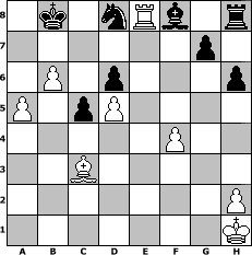 Partie-Notation im PGN-Format [Event "Im Winter 2020"] [Site "www.mySchach.de"] [Date "2020.01.29"] [Round "2"] [White "alibengali"] [Black "sprinterde"] [ECO "B32"] [WhitemyELO "1657"] [BlackmyELO "1700"] [Result "1-0"] [TimeControl "10/1728000"] [WhiteDays "75"] [BlackDays "95"] [MySchachNr "117164"] 1. e4 c5 2. Nf3 Nc6 3. d4 e6 4. d5 exd5 5. exd5 Na5 6. c4 Qb6 7. b3 Qf6 8. Qe2+ Ne7 9. Bb2 Qa6 10. Nc3 d6 11. Nb5 Qb6 12. Ng5 a6 13. Nc3 h6 14. Nge4 Bf5 15. g3 O-O-O 16. Bg2 Qc7 17. O-O f6 18. Rad1 Bd7 19. g4 Re8 20. f4 f5 21. gxf5 Nxf5 22. Bh3 Kb8 23. Bxf5 Bxf5 24. Qf3 Qf7 25. Rd2 b5 26. cxb5 axb5 27. Re1 b4 28. Rde2 bxc3 29. Bxc3 Bxe4 30. Rxe4 Rxe4 31. Qxe4 Nb7 32. a4 Ka7 33. b4 Qh5 34. a5 Qh3 35. Qc4 Qg4+ 36. Kh1 Qh3 37. b5 Qf3+ 38. Kg1 Qh5 39. b6+ Kb8 40. Qe2 Qg6+ 41. Kh1 Nd8 42. Qe8 Qxe8 43. Rxe8 1-0 Stellungs-Notation im FEN-Format 1k1nRb1r/6p1/1P1p3p/P1pP4/5P2/2B5/7P/7K - - - 0 43 Geschlagene Figuren Weiss: Geschlagene Figuren Schwarz: Klicken Sie auf eine geschlagene Figur um den gewünschten Zug darzustellen!