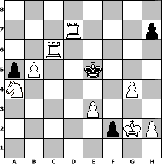 Partie-Notation im PGN-Format [Event "1. Weltmeisterschaft @ myschach.de"] [Site "www.mySchach.de"] [Date "2006.09.15"] [Round "1"] [White "tschulz"] [Black "Master1"] [ECO "A00"] [WhitemyELO "1593"] [BlackmyELO "2017"] [Result "1-0"] [TimeControl "10/2592000"] [WhiteDays "113"] [BlackDays "140"] [MySchachNr "28454"] 1. b4 Nf6 2. Bb2 d5 3. e3 Bf5 4. Nf3 e6 5. b5 c6 6. a4 c5 7. Be2 Bd6 8. O-O c4 9. Nh4 Bc5 10. Nxf5 Nbd7 11. Nxg7+ Kf8 12. Nh5 b6 13. Bf3 Be7 14. Qe2 a6 15. e4 dxe4 16. Bxe4 Nc5 17. Bxa8 Qxa8 18. Nxf6 a5 19. Nd7+ Nxd7 20. Bxh8 Bf6 21. Bxf6 Nxf6 22. Qe5 Qe4 23. Qxe4 Nxe4 24. d3 cxd3 25. cxd3 Nc5 26. d4 Nb3 27. Ra3 Nxd4 28. Ra2 f5 29. Nc3 e5 30. Nd5 f4 31. Nxb6 f3 32. g4 e4 33. Rd1 Ne2+ 34. Kh1 Nc3 35. Rd8+ Ke7 36. Rd7+ Ke6 37. Rc2 Nxa4 38. Rc6+ Ke5 39. Nxa4 e3 40. fxe3 f2 41. Kg2 1-0 Stellungs-Notation im FEN-Format 8/3R3p/2R5/pP2k3/N5P1/4P3/5pKP/8 - - - 1 41 Geschlagene Figuren Weiss: ![]() ![]() ![]() ![]() ![]() ![]() ![]() ![]() ![]() ![]() ![]() ![]() ![]() ![]() ![]() Geschlagene Figuren Schwarz: ![]() ![]() ![]() ![]() ![]() ![]() ![]() ![]() ![]() ![]() ![]() ![]() ![]() ![]() ![]() Klicken Sie auf eine geschlagene Figur um den gewünschten Zug darzustellen!