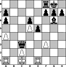 Partie-Notation im PGN-Format [Event "unter uns Nr. 19 (Osterturnier)"] [Site "www.mySchach.de"] [Date "2014.04.17"] [Round "2"] [White "Schefsche"] [Black "Kyros537"] [ECO "C21"] [WhitemyELO "1424"] [BlackmyELO "1471"] [Result "0-1"] [TimeControl "10/864000"] [WhiteDays "16"] [BlackDays "30"] [MySchachNr "93985"] 1. e4 e5 2. d4 Nf6 3. Nc3 Bb4 4. Bd2 Bxc3 5. Bxc3 d6 6. Bd3 c5 7. d5 Bg4 8. Nf3 O-O 9. O-O Na6 10. Bxa6 bxa6 11. h3 Bh5 12. g4 Bg6 13. Nd2 Nxe4 14. Nxe4 Bxe4 15. Re1 Bg6 16. b4 Rc8 17. bxc5 Rxc5 18. a4 Rxc3 19. Qd2 Rxh3 20. Kg2 Qh4 21. Kf1 Rh1+ 22. Ke2 Qxg4+ 23. f3 Rh2+ 24. Kd1 Rxd2+ 25. Kxd2 Qd4+ 26. Kc1 Qc3 0-1 Stellungs-Notation im FEN-Format 5rk1/p4ppp/p2p2b1/3Pp3/P7/2q2P2/2P5/R1K1R3 - - - 3 27 Geschlagene Figuren Weiss: ![]() ![]() ![]() ![]() ![]() ![]() ![]() ![]() ![]() ![]() ![]() ![]() ![]() ![]() ![]() Geschlagene Figuren Schwarz: ![]() ![]() ![]() ![]() ![]() ![]() ![]() ![]() ![]() ![]() ![]() ![]() ![]() ![]() ![]() Klicken Sie auf eine geschlagene Figur um den gewünschten Zug darzustellen!