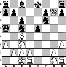 Partie-Notation im PGN-Format [Event "Ryder-Gambit 2"] [Site "www.mySchach.de"] [Date "2011.12.20"] [Round "1"] [White "ujack1961"] [Black "Haki"] [ECO "D00"] [WhitemyELO "1682"] [BlackmyELO "1385"] [Result "1-0"] [TimeControl "10/2592000"] [WhiteDays "60"] [BlackDays "60"] [MySchachNr "78256"] 1. d4 d5 2. e4 dxe4 3. Nc3 Nf6 4. f3 exf3 5. Qxf3 Qxd4 6. Be3 Qb4 7. O-O-O c6 8. h3 e5 9. Qg3 Nbd7 10. a3 Qa5 11. Bc4 Bc5 12. Bxc5 Nxc5 13. Qxg7 1-0 Stellungs-Notation im FEN-Format r1b1k2r/pp3pQp/2p2n2/q1n1p3/2B5/P1N4P/1PPP2P1/2KR2NR - kq - 0 13 Geschlagene Figuren Weiss: ![]() ![]() ![]() ![]() ![]() ![]() ![]() ![]() ![]() ![]() ![]() ![]() ![]() ![]() ![]() Geschlagene Figuren Schwarz: ![]() ![]() ![]() ![]() ![]() ![]() ![]() ![]() ![]() ![]() ![]() ![]() ![]() ![]() ![]() Klicken Sie auf eine geschlagene Figur um den gewünschten Zug darzustellen!