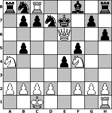 Partie-Notation im PGN-Format [Event "?"] [Site "www.mySchach.de"] [Date "2023.10.03"] [Round "?"] [White "pillepalle"] [Black "Andreas1954"] [ECO "D00"] [WhitemyELO "2053"] [BlackmyELO "1253"] [Result "1-0"] [TimeControl "10/1728000"] [WhiteDays "40"] [BlackDays "40"] [MySchachNr "130761"] 1. d4 d5 2. e4 dxe4 3. Nc3 f5 4. Bg5 h6 5. Qh5+ Kd7 6. d5 Nf6 7. Bb5+ Kd6 8. Bf4+ Kc5 9. Qe2 e5 10. Na4+ Kxd5 11. O-O-O+ Ke6 12. Rxd8 exf4 13. Qc4+ Ke7 14. Rxc8 Nfd7 15. Ne2 a6 16. Nxf4 axb5 17. Qe6# 1-0 Stellungs-Notation im FEN-Format rnR2b1r/1ppnk1p1/4Q2p/1p3p2/N3pN2/8/PPPP1PPP/2K4R - - - 1 17 Geschlagene Figuren Weiss: Geschlagene Figuren Schwarz: Klicken Sie auf eine geschlagene Figur um den gewünschten Zug darzustellen!