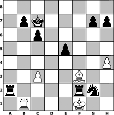 Partie-Notation im PGN-Format [Event "Ryder-Gambit 2"] [Site "www.mySchach.de"] [Date "2011.12.20"] [Round "1"] [White "Haki"] [Black "Wulfen49"] [ECO "D00"] [WhitemyELO "1385"] [BlackmyELO "1370"] [Result "0-1"] [TimeControl "10/2592000"] [WhiteDays "117"] [BlackDays "114"] [MySchachNr "78262"] 1. d4 d5 2. e4 dxe4 3. Nc3 Nf6 4. f3 exf3 5. Qxf3 Qxd4 6. Be3 Qg4 7. Qf2 Ne4 8. Nxe4 Qxe4 9. Bd3 Qe5 10. O-O-O Bg4 11. Bc4 Bxd1 12. Bxf7+ Kd8 13. Kxd1 Nd7 14. Nf3 Qxb2 15. Kd2 Qb4+ 16. c3 Qb2+ 17. Kd3 Qxf2 18. Bxf2 e5 19. Kc2 Ke7 20. Bd5 c6 21. Be4 Re8 22. Rb1 Kd6 23. Nd2 Kc7 24. Bxa7 Ra8 25. Be3 Rxa2+ 26. Kd1 Bc5 27. Bxc5 Nxc5 28. Bf3 Rd8 29. Ke1 Rdxd2 30. h4 Nd3+ 31. Kf1 Nf4 32. Ke1 Nxg2+ 33. Kf1 Rf2+ 0-1 Stellungs-Notation im FEN-Format 8/1pk3pp/2p5/4p3/7P/2P2B2/r4rn1/1R3K2 - - - 2 34 Geschlagene Figuren Weiss: ![]() ![]() ![]() ![]() ![]() ![]() ![]() ![]() ![]() ![]() ![]() ![]() ![]() ![]() ![]() Geschlagene Figuren Schwarz: ![]() ![]() ![]() ![]() ![]() ![]() ![]() ![]() ![]() ![]() ![]() ![]() ![]() ![]() ![]() Klicken Sie auf eine geschlagene Figur um den gewünschten Zug darzustellen!