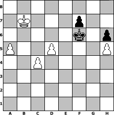 Partie-Notation im PGN-Format [Event "HIGHLAND QUEEN I 2012"] [Site "www.mySchach.de"] [Date "2012.03.01"] [Round "1"] [White "Erich"] [Black "Lohl"] [ECO "C17"] [WhitemyELO "1998"] [BlackmyELO "1857"] [Result "1-0"] [TimeControl "10/2592000"] [WhiteDays "30"] [BlackDays "17"] [MySchachNr "80252"] 1. e4 e6 2. d4 d5 3. Nc3 Bb4 4. e5 c5 5. Nf3 Ne7 6. a3 Bxc3+ 7. bxc3 Qc7 8. Be2 b6 9. O-O Ba6 10. Bxa6 Nxa6 11. Qd3 Nb8 12. a4 c4 13. Qd2 Nbc6 14. Ba3 O-O 15. Qf4 Ng6 16. Qg4 Rfe8 17. Nh4 Nxh4 18. Qxh4 Ne7 19. Bxe7 Rxe7 20. f4 Rf8 21. f5 exf5 22. Rxf5 Re6 23. Rf2 Rh6 24. Qg4 Rg6 25. Qf3 Qd7 26. Raf1 h6 27. g3 Qc6 28. Ra1 Rg5 29. Kg2 Qd7 30. h4 Rg6 31. Qf5 Re6 32. Qg4 Qc7 33. Qh5 Rg6 34. Raf1 Qc6 35. Rf4 a6 36. R1f2 Qe6 37. R4f3 Kh8 38. Qf5 Qc6 39. Kf1 Kg8 40. Ke1 Re6 41. Qh5 Re7 42. g4 Qd7 43. g5 Re6 44. Rf6 gxf6 45. gxf6 Kh7 46. Qf5+ Kh8 47. Qf4 Rxf6 48. exf6 Kh7 49. Rg2 Qe8+ 50. Kd2 Rg8 51. Qf5+ Kh8 52. Qxd5 Rxg2+ 53. Qxg2 Qg8 54. Qxg8+ Kxg8 55. d5 Kf8 56. Ke3 Ke8 57. Kd4 Kd7 58. Kxc4 Kd6 59. Kd4 Kc7 60. c4 Kd6 61. h5 Kd7 62. c5 bxc5+ 63. Kxc5 Kc7 64. a5 Kd7 65. Kb6 Kd6 66. c4 Ke5 67. Kxa6 Kxf6 68. Kb7 1-0 Stellungs-Notation im FEN-Format 8/1K3p2/5k1p/P2P3P/2P5/8/8/8 - - - 1 68 Geschlagene Figuren Weiss: Geschlagene Figuren Schwarz: Klicken Sie auf eine geschlagene Figur um den gewünschten Zug darzustellen!