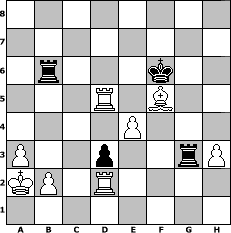 Partie-Notation im PGN-Format [Event "Valkyrenritt"] [Site "www.mySchach.de"] [Date "2021.02.22"] [Round "2"] [White "Mynona"] [Black "boeserWatz"] [ECO "D02"] [WhitemyELO "1279"] [BlackmyELO "1290"] [Result "1-0"] [TimeControl "10/864000"] [WhiteDays "50"] [BlackDays "44"] [MySchachNr "121301"] 1. d4 d5 2. Nf3 Nf6 3. h3 Nc6 4. Bf4 Nh5 5. Bh2 e6 6. a3 b6 7. e3 Bd6 8. Bxd6 Qxd6 9. Bd3 h6 10. Nc3 a6 11. Ne5 O-O 12. Qxh5 f6 13. Nxc6 Qxc6 14. Qg6 e5 15. Qh7+ Kf7 16. Bg6+ Ke6 17. Qxg7 Bd7 18. dxe5 fxe5 19. Qxh6 Rf6 20. Qh5 Rg8 21. e4 d4 22. Bf5+ Kd6 23. Nd5 Be8 24. Qf3 Rf7 25. Nb4 Qc4 26. Qb3 Qxb3 27. cxb3 a5 28. Nd5 Rxg2 29. Rf1 Bb5 30. Rh1 Rf8 31. O-O-O Rxf2 32. Rd2 Rf3 33. b4 Bc4 34. Nxc7 Kxc7 35. bxa5 bxa5 36. Rc2 Kd6 37. Rxc4 Rg8 38. Kb1 Rg2 39. Rhc1 Ke7 40. Rc5 Rb3 41. R1c2 Rg1+ 42. Ka2 Rgg3 43. Rxe5+ Kf6 44. Rxa5 d3 45. Rd2 Rb6 46. Rd5 1-0 Stellungs-Notation im FEN-Format 8/8/1r3k2/3R1B2/4P3/P2p2rP/KP1R4/8 - - - 3 46 Geschlagene Figuren Weiss: Geschlagene Figuren Schwarz: Klicken Sie auf eine geschlagene Figur um den gewünschten Zug darzustellen!