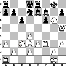 Partie-Notation im PGN-Format [Event "2. Nordsachsenturnier"] [Site "www.mySchach.de"] [Date "2015.10.22"] [Round "2"] [White "peter58"] [Black "Seneca"] [ECO "D10"] [WhitemyELO "1566"] [BlackmyELO "1473"] [Result "1-0"] [TimeControl "10/1728000"] [WhiteDays "38"] [BlackDays "17"] [MySchachNr "100897"] 1. d4 d5 2. c4 c6 3. Nc3 e5 4. e3 exd4 5. exd4 dxc4 6. Bxc4 Nf6 7. a3 Be7 8. h3 O-O 9. Bd3 Re8 10. Be3 Be6 11. Nf3 Nd5 12. O-O Nxe3 13. fxe3 f6 14. Nh4 Nd7 15. Qh5 g6 16. Nxg6 Bf7 17. Rf3 1-0 Stellungs-Notation im FEN-Format r2qr1k1/pp1nbb1p/2p2pN1/7Q/3P4/P1NBPR1P/1P1P2P1/R5K1 - - - 2 17 Geschlagene Figuren Weiss: Geschlagene Figuren Schwarz: Klicken Sie auf eine geschlagene Figur um den gewünschten Zug darzustellen!