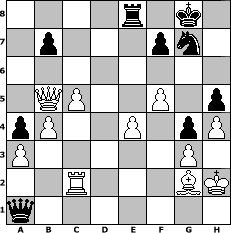 Partie-Notation im PGN-Format [Event "Frohes Fest und spannende Spiele"] [Site "www.mySchach.de"] [Date "2018.12.21"] [Round "1"] [White "miu"] [Black "freizeitspieler"] [ECO "A05"] [WhitemyELO "1608"] [BlackmyELO "1544"] [Result "1-0"] [TimeControl "10/864000"] [WhiteDays "40"] [BlackDays "38"] [MySchachNr "113822"] 1. Nf3 Nf6 2. g3 Nc6 3. d3 e5 4. e4 Bc5 5. Bg2 d6 6. O-O Bg4 7. h3 Bxf3 8. Bxf3 Qd7 9. Kh2 Nd4 10. Bg2 h6 11. c3 Ne6 12. b4 Bb6 13. Nd2 a5 14. Nc4 a4 15. Nxb6 cxb6 16. a3 b5 17. f4 Rd8 18. Bb2 g5 19. f5 Ng7 20. d4 h5 21. Rc1 Qc6 22. Qe2 g4 23. h4 O-O 24. c4 Qb6 25. dxe5 dxe5 26. c5 Qc6 27. Rfd1 Rfe8 28. Rxd8 Rxd8 29. Bxe5 Re8 30. Bxf6 Qxf6 31. Rc2 Qa1 32. Qxb5 1-0 Stellungs-Notation im FEN-Format 4r1k1/1p3pn1/8/1QP2P1p/pP2P1pP/P5P1/2R3BK/q7 - - - 0 32 Geschlagene Figuren Weiss: ![]() ![]() ![]() ![]() ![]() ![]() ![]() ![]() ![]() ![]() ![]() ![]() ![]() ![]() ![]() Geschlagene Figuren Schwarz: ![]() ![]() ![]() ![]() ![]() ![]() ![]() ![]() ![]() ![]() ![]() ![]() ![]() ![]() ![]() Klicken Sie auf eine geschlagene Figur um den gewünschten Zug darzustellen!