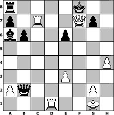 | Partie-Notation im PGN-Format [Event "Hochexplosiv"] [Site "www.mySchach.de"] [Date "2009.05.01"] [Round "1"] [White "muetoe"] [Black "Hobbykegler"] [ECO "A40"] [WhitemyELO "1946"] [BlackmyELO "1061"] [Result "1-0"] [TimeControl "10/2592000"] [WhiteDays "30"] [BlackDays "30"] [MySchachNr "55340"] 1. d4 e6 2. e4 d5 3. Nd2 Nc6 4. Ngf3 dxe4 5. Nxe4 Nf6 6. Nxf6+ Qxf6 7. Bg5 Qg6 8. Bd3 f5 9. h4 h5 10. O-O Bd6 11. Ne5 Nxe5 12. dxe5 Bxe5 13. Bxf5 Qxf5 14. Qd8+ Kf7 15. Qxh8 Qxc2 16. Rac1 Qxb2 17. Qxh5+ Kf8 18. Rfd1 Bd4 19. Be3 Bxe3 20. fxe3 b6 21. Rxc7 Ba6 22. Qf7# 1-0 Stellungs-Notation im FEN-Format r4k2/p1R2Qp1/bp2p3/8/7P/4P3/Pq4P1/3R2K1 - - - 2 22 Geschlagene Figuren Weiss:                              Geschlagene Figuren Schwarz:                               Klicken Sie auf eine geschlagene Figur um den gewünschten Zug darzustellen!