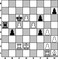 Partie-Notation im PGN-Format [Event "?"] [Site "www.mySchach.de"] [Date "2025.11.03"] [Round "?"] [White "faustballer"] [Black "willibaerchen@"] [Variant "Fischerrandom"] [SetUp "1"] [FEN "rnqkbnrb/pppppppp/8/8/8/8/PPPPPPPP/RNQKBNRB w KQkq - 0 1"] [WhitemyELO "1449"] [BlackmyELO "1500"] [Result "1-0"] [TimeControl "10/864000"] [WhiteDays "10"] [BlackDays "00"] [MySchachNr "133918"] 1. g4 g5 2. d3 Ng6 3. Bc3 Bxc3 4. Nxc3 d6 5. Qxg5 f6 6. Qd2 Ne5 7. h3 c5 8. a3 Bc6 9. O-O-O b5 10. e4 a5 11. d4 Nc4 12. Qd3 Qb7 13. dxc5 Nd7 14. cxd6 e6 15. Ne3 Nxe3 16. Qxe3 b4 17. axb4 axb4 18. Nb1 e5 19. f3 Ra1 20. Qb3 Rf8 21. c3 Qa6 22. c4 Qa4 23. Qxa4 Bxa4 24. Rde1 Nc5 25. Kd2 Nb3+ 26. Ke3 Nc5 27. Nd2 Ra2 28. b3 Nxb3 29. Nxb3 Bxb3 30. c5 Kd7 31. Rb1 Bc2 32. Rbc1 Ra3+ 33. Kd2 Rc3 34. Rxc2 Kc6 35. Rxc3 Ra8 36. Rc2 Ra5 37. f4 exf4 38. e5+ 1-0 Stellungs-Notation im FEN-Format 8/7p/2kP1p2/r1P1P3/1p3pP1/7P/2RK2P1/6RB - - - 0 38 Geschlagene Figuren Weiss: Geschlagene Figuren Schwarz: Klicken Sie auf eine geschlagene Figur um den gewünschten Zug darzustellen!