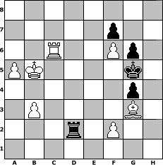 Partie-Notation im PGN-Format [Event "Schach dem Osterhasen IV"] [Site "www.mySchach.de"] [Date "2015.03.29"] [Round "1"] [White "Schefsche"] [Black "faustballer"] [ECO "C21"] [WhitemyELO "1470"] [BlackmyELO "1498"] [Result "1-0"] [TimeControl "10/2592000"] [WhiteDays "136"] [BlackDays "149"] [MySchachNr "98703"] 1. e4 e5 2. d4 exd4 3. Nf3 g6 4. Qxd4 Qf6 5. Be3 Nc6 6. Qxf6 Nxf6 7. Nc3 a6 8. O-O-O Bg7 9. h3 O-O 10. g4 Re8 11. Bd3 Nb4 12. e5 Nxd3+ 13. Rxd3 Nxg4 14. hxg4 b5 15. Nd5 Bb7 16. Rh3 Rac8 17. Nf6+ Bxf6 18. exf6 d6 19. g5 Re4 20. b3 Rg4 21. Rd4 Rxd4 22. Nxd4 c5 23. Ne2 Re8 24. Kd2 Rc8 25. Bf4 d5 26. Re3 d4 27. Re7 Bf3 28. Bd6 Bxe2 29. Kxe2 c4 30. Ra7 cxb3 31. cxb3 Rd8 32. Kd3 h6 33. Rxa6 hxg5 34. Kxd4 g4 35. Kc5 Kh7 36. Kxb5 Kh6 37. Rc6 Kh5 38. Bg3 Rd2 39. a4 Kg5 40. a5 1-0 Stellungs-Notation im FEN-Format 8/5p2/2R2Pp1/PK4k1/6p1/1P4B1/3r1P2/8 - - - 0 40 Geschlagene Figuren Weiss: Geschlagene Figuren Schwarz: Klicken Sie auf eine geschlagene Figur um den gewünschten Zug darzustellen!