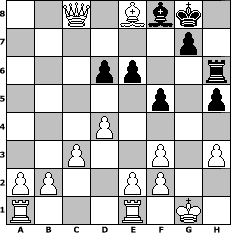 15. c3 Nc4 16. Nxc4 bxc4 17. Bxc4 Rc8 18. Bd3 f5 19. Qa4+ Bc6 20. Qxa6 Kf7