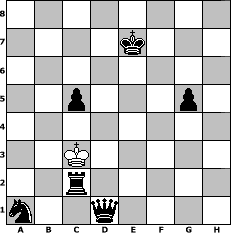 Partie-Notation im PGN-Format [Event "48/54er Turnier"] [Site "www.mySchach.de"] [Date "2010.11.18"] [Round "2"] [White "Ilona48"] [Black "Andreas54"] [ECO "A00"] [WhitemyELO "1422"] [BlackmyELO "1491"] [Result "0-1"] [TimeControl "10/2592000"] [WhiteDays "170"] [BlackDays "180"] [MySchachNr "69943"] 1. Nc3 e5 2. e4 Nc6 3. Nf3 d6 4. Bc4 Nf6 5. Ng5 Be6 6. d3 h6 7. Nxe6 fxe6 8. Bxe6 Qe7 9. Bc4 a6 10. f4 exf4 11. Bxf4 g5 12. Be3 b5 13. Nd5 Qd8 14. Nxf6+ Qxf6 15. Qh5+ Ke7 16. Bf7 Qxf7 17. Qg4 Qf6 18. O-O-O Rd8 19. h4 gxh4 20. Rxh4 Ne5 21. Qf4 Qxf4 22. Bxf4 Ng6 23. Rh5 Nxf4 24. Rg5 hxg5 25. b3 Rh2 26. d4 Rxg2 27. a4 Ne2+ 28. Kb2 Bg7 29. c3 Nf4+ 30. Ka3 Rh8 31. c4 Rhh2 32. axb5 Ra2+ 33. Kb4 Rh3 34. bxa6 Rxa6 35. Kb5 Rb6+ 36. Ka5 Rhxb3 37. Ra1 Rb1 38. Ra4 Bxd4 39. Ra3 R6b3 40. Rxb3 Rxb3 41. Ka4 Re3 42. Kb5 Rxe4 43. Ka5 Bc3+ 44. Kb5 Re5+ 45. Kc6 Rc5+ 46. Kb7 Rxc4 47. Kc8 c5 48. Kb7 Nd5 49. Kc6 Nb4+ 50. Kb5 d5 51. Ka4 Nc2+ 52. Kb3 Na1+ 53. Ka2 d4 54. Kb1 d3 55. Kc1 d2+ 56. Kd1 Rg4 57. Ke2 Rg2+ 58. Kd3 d1=Q+ 59. Kxc3 Rc2# 0-1 Stellungs-Notation im FEN-Format 8/4k3/8/2p3p1/8/2K5/2r5/n2q4 - - - 1 60 Geschlagene Figuren Weiss: ![]() ![]() ![]() ![]() ![]() ![]() ![]() ![]() ![]() ![]() ![]() ![]() ![]() ![]() ![]() Geschlagene Figuren Schwarz: ![]() ![]() ![]() ![]() ![]() ![]() ![]() ![]() ![]() ![]() ![]() ![]() ![]() ![]() ![]() Klicken Sie auf eine geschlagene Figur um den gewünschten Zug darzustellen!