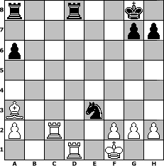 Partie eroeffnet am 05.11.2007, 00:06 Uhr und beendet am 10.02.2008, 12:58 Uhr Spieler weiss: MartinSilies Spieler schwarz: Phantasos Phantasos hat die Partie gewonnen! | |