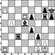 Partie-Notation im PGN-Format [Event "CN Fr"] [Site "www.mySchach.de"] [Date "2012.03.20"] [Round "1"] [White "Erich"] [Black "woern63"] [ECO "A00"] [WhitemyELO "2043"] [BlackmyELO "1907"] [Result "1-0"] [TimeControl "10/2592000"] [WhiteDays "30"] [BlackDays "30"] [MySchachNr "80706"] 1. Nc3 c5 2. e4 e6 3. Nf3 Nc6 4. d4 cxd4 5. Nxd4 a6 6. Be2 d6 7. Nf3 Nf6 8. O-O Be7 9. Nd4 O-O 10. Nxc6 bxc6 11. Qd3 d5 12. Bf4 a5 13. Qg3 Nxe4 14. Nxe4 dxe4 15. Rad1 Qb6 16. Rfe1 Bc5 17. Bc4 f5 18. b3 Ra7 19. Bd6 Re8 20. Bxc5 Qxc5 21. Rd6 h6 22. Red1 Rae7 23. a4 Kh7 24. h4 Rf7 25. h5 Ref8 26. Rd8 Qe7 27. R8d6 Kh8 28. Qe3 Qh4 29. Re1 Qxh5 30. Qc5 Qg5 31. Qxa5 Rf6 32. Qc5 Rg6 33. Bf1 Rg8 34. Qxc6 Qh4 35. Re3 Rg5 36. Qc3 Kh7 37. Rh3 Qf4 38. Qd4 Rg6 39. b4 Bb7 40. c4 Qc1 41. Re3 Qb1 42. Qc3 Qa2 43. a5 f4 44. Re2 Qa4 45. b5 Rc8 46. Re1 f3 47. a6 Bd5 48. Ra1 Qxb5 49. cxb5 Rxc3 50. a7 1-0 Stellungs-Notation im FEN-Format 8/P5pk/3Rp1rp/1P1b4/4p3/2r2p2/5PP1/R4BK1 - - - 0 50 Geschlagene Figuren Weiss: Geschlagene Figuren Schwarz: Klicken Sie auf eine geschlagene Figur um den gewünschten Zug darzustellen!
