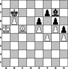 Partie-Notation im PGN-Format [Event "Wintereinbruch"] [Site "www.mySchach.de"] [Date "2015.10.18"] [Round "1"] [White "Wernburger"] [Black "FrankB"] [ECO "A13"] [WhitemyELO "1836"] [BlackmyELO "1629"] [Result "1-0"] [TimeControl "10/1728000"] [WhiteDays "84"] [BlackDays "95"] [MySchachNr "100838"] 1. c4 e6 2. Nc3 Nf6 3. Nf3 b6 4. e4 Bb7 5. Bd3 d6 6. Bc2 c5 7. d4 cxd4 8. Nxd4 Nc6 9. Ba4 Qc8 10. O-O a6 11. Be3 Nd7 12. Rc1 Be7 13. Nd5 Bd8 14. Nxc6 Bxc6 15. Nc3 O-O 16. Qxd6 Bxa4 17. Nxa4 Bc7 18. Qb4 Rb8 19. Rfd1 Rd8 20. b3 Qb7 21. f3 h6 22. c5 bxc5 23. Qxb7 Rxb7 24. Nxc5 Nxc5 25. Rxd8+ Bxd8 26. Rxc5 Rc7 27. b4 Kf8 28. a4 Ke7 29. b5 axb5 30. Rxc7+ Bxc7 31. axb5 Kd7 32. Kf2 Ba5 33. Bd4 g6 34. Ke2 Kc7 35. Kd3 Bb4 36. Kc4 Bd6 37. e5 Ba3 38. g4 Bc1 39. h4 h5 40. Kc5 Ba3+ 41. Kc4 Be7 42. g5 Ba3 43. Be3 Bf8 44. Bc5 Bg7 45. f4 Kb7 46. Kb4 Kc7 47. Ka5 Kb7 48. b6 1-0 Stellungs-Notation im FEN-Format 8/1k3pb1/1P2p1p1/K1B1P1Pp/5P1P/8/8/8 - - - 0 48 Geschlagene Figuren Weiss: Geschlagene Figuren Schwarz: Klicken Sie auf eine geschlagene Figur um den gewünschten Zug darzustellen!