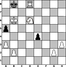 Partie-Notation im PGN-Format [Event "1. Weltmeisterschaft @ myschach.de"] [Site "www.mySchach.de"] [Date "2006.09.15"] [Round "1"] [White "MartinSilies"] [Black "korn1991"] [ECO "C54"] [WhitemyELO "1547"] [BlackmyELO "1494"] [Result "1-0"] [TimeControl "10/2592000"] [WhiteDays "073"] [BlackDays "138"] [MySchachNr "28482"] 1. e4 e5 2. Nf3 Nc6 3. Bc4 Bc5 4. c3 Nf6 5. d4 exd4 6. cxd4 Bb4+ 7. Bd2 Bxd2+ 8. Nbxd2 O-O 9. d5 Nb4 10. a3 Nd3+ 11. Bxd3 d6 12. O-O Bg4 13. h3 Bxf3 14. Qxf3 g6 15. Qe2 Qd7 16. f4 Rfe8 17. Qf3 c6 18. dxc6 bxc6 19. f5 Rab8 20. fxg6 Re6 21. gxh7+ Nxh7 22. e5 dxe5 23. Qg4+ Kf8 24. Bxh7 Rbe8 25. Qg8+ Ke7 26. Rxf7+ Kd8 27. Rxd7+ Kxd7 28. Qxe6+ Rxe6 29. Bf5 Ke7 30. Bxe6 Kxe6 31. Kf2 Kd5 32. Ke3 c5 33. Ne4 c4 34. Rd1+ Kc6 35. Rd6+ Kc7 36. Kd2 Kb7 37. Kc3 Kc7 38. Kxc4 Kb7 39. Kc5 a6 40. Rd7+ Kc8 41. Kc6 a5 42. Nd6+ Kb8 43. Kb6 e4 44. Rd8# 1-0 Stellungs-Notation im FEN-Format 1k1R4/8/1K1N4/p7/4p3/P6P/1P4P1/8 - - - 1 44 Geschlagene Figuren Weiss: ![]() ![]() ![]() ![]() ![]() ![]() ![]() ![]() ![]() ![]() ![]() ![]() ![]() ![]() ![]() Geschlagene Figuren Schwarz: ![]() ![]() ![]() ![]() ![]() ![]() ![]() ![]() ![]() ![]() ![]() ![]() ![]() ![]() ![]() Klicken Sie auf eine geschlagene Figur um den gewünschten Zug darzustellen!