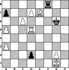 Partie-Notation im PGN-Format [Event "1-2009"] [Site "www.mySchach.de"] [Date "2009.01.01"] [Round "1"] [White "Naunhofer"] [Black "BobbyF4"] [ECO "A80"] [WhitemyELO "1580"] [BlackmyELO "1584"] [Result "1-0"] [TimeControl "10/1728000"] [WhiteDays "117"] [BlackDays "116"] [MySchachNr "51215"] 1. d4 f5 2. Nf3 Nf6 3. c4 e6 4. Nc3 d6 5. e3 Be7 6. Be2 c6 7. b4 O-O 8. O-O Ne4 9. Bb2 d5 10. c5 Na6 11. Bxa6 bxa6 12. Ne5 Qe8 13. Ne2 Bf6 14. Nd3 a5 15. f3 Ng5 16. bxa5 Ba6 17. Qc2 Rb8 18. Rab1 Nf7 19. Rfe1 g5 20. Bc3 Qd7 21. a3 h5 22. Nb4 Bb5 23. Nc1 g4 24. Qf2 h4 25. e4 Bg5 26. exf5 exf5 27. f4 Bf6 28. Ncd3 Kh7 29. Ne5 Qc7 30. Qc2 Nh6 31. Rb2 Kg7 32. Reb1 g3 33. hxg3 hxg3 34. Nxd5 cxd5 35. Rxb5 Rxb5 36. Rxb5 Ng4 37. Qb1 Rf7 38. Qxf5 Nxe5 39. dxe5 Be7 40. e6+ Rf6 41. Qg5+ Kh7 42. Qh5+ Kg8 43. Qe8+ Kh7 44. Qd7 Qxd7 45. exd7 Rxf4 46. Be5 Rf8 47. Bxg3 d4 48. c6 d3 49. Rd5 Kg6 50. Bd6 d2 51. Bxe7 1-0 Stellungs-Notation im FEN-Format 5r2/p2PB3/2P3k1/P2R4/8/P7/3p2P1/6K1 - - - 0 51 Geschlagene Figuren Weiss: Geschlagene Figuren Schwarz: Klicken Sie auf eine geschlagene Figur um den gewünschten Zug darzustellen!
