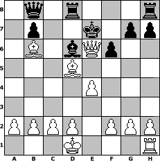Partie-Notation im PGN-Format [Event "Schachhilfe ade oweh oweh"] [Site "www.mySchach.de"] [Date "2006.02.23"] [Round "1"] [White "bane"] [Black "Juri"] [Variant "Fischerrandom"] [SetUp "1"] [FEN "rknnbbqr/pppppppp/8/8/8/8/PPPPPPPP/RKNNBBQR w KQkq - 0 1"] [WhitemyELO "1950"] [BlackmyELO "1488"] [Result "1-0"] [TimeControl "10/864000"] [WhiteDays "10"] [BlackDays "10"] [MySchachNr "22795"] 1. f3 d5 2. e4 dxe4 3. fxe4 e5 4. Bh4 Be7 5. Bg3 f6 6. Nb3 Bh5 7. Ne3 Ne6 8. Nd5 Qd8 9. O-O-O Bxd1 10. Kxd1 c5 11. Bc4 Nd4 12. Nxd4 cxd4 13. Qxd4 Nb6 14. Qc3 Nxd5 15. Bxd5 Qb6 16. Bxe5+ Bd6 17. Bd4 Qc7 18. Qb3 O-O-O 19. Bxa7 Kd7 20. Bb6 Qb8 21. Qh3+ Ke7 22. Qe6+ 1-0 Stellungs-Notation im FEN-Format 1q1r3r/1p2k1pp/1B1bQp2/3B4/4P3/8/PPPP1PPP/3K3R - - - 6 22 Geschlagene Figuren Weiss: Geschlagene Figuren Schwarz: Klicken Sie auf eine geschlagene Figur um den gewünschten Zug darzustellen!